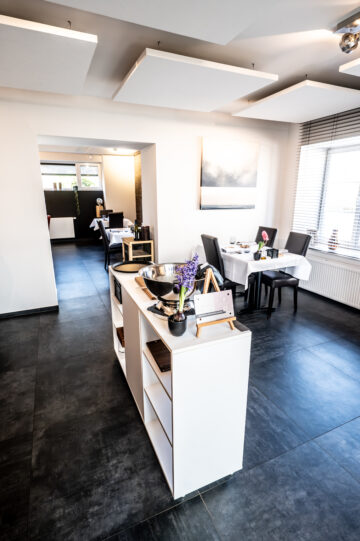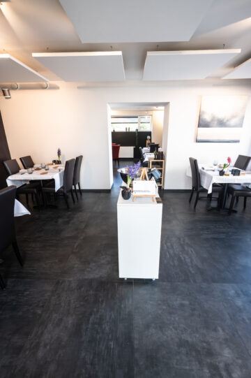 À l’intérieur, la salle s’ouvre dans des tons modernes, sobres, lumineux , comme si l’histoire, sans renier le passé, passait le relais à son époque.