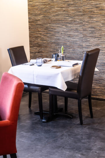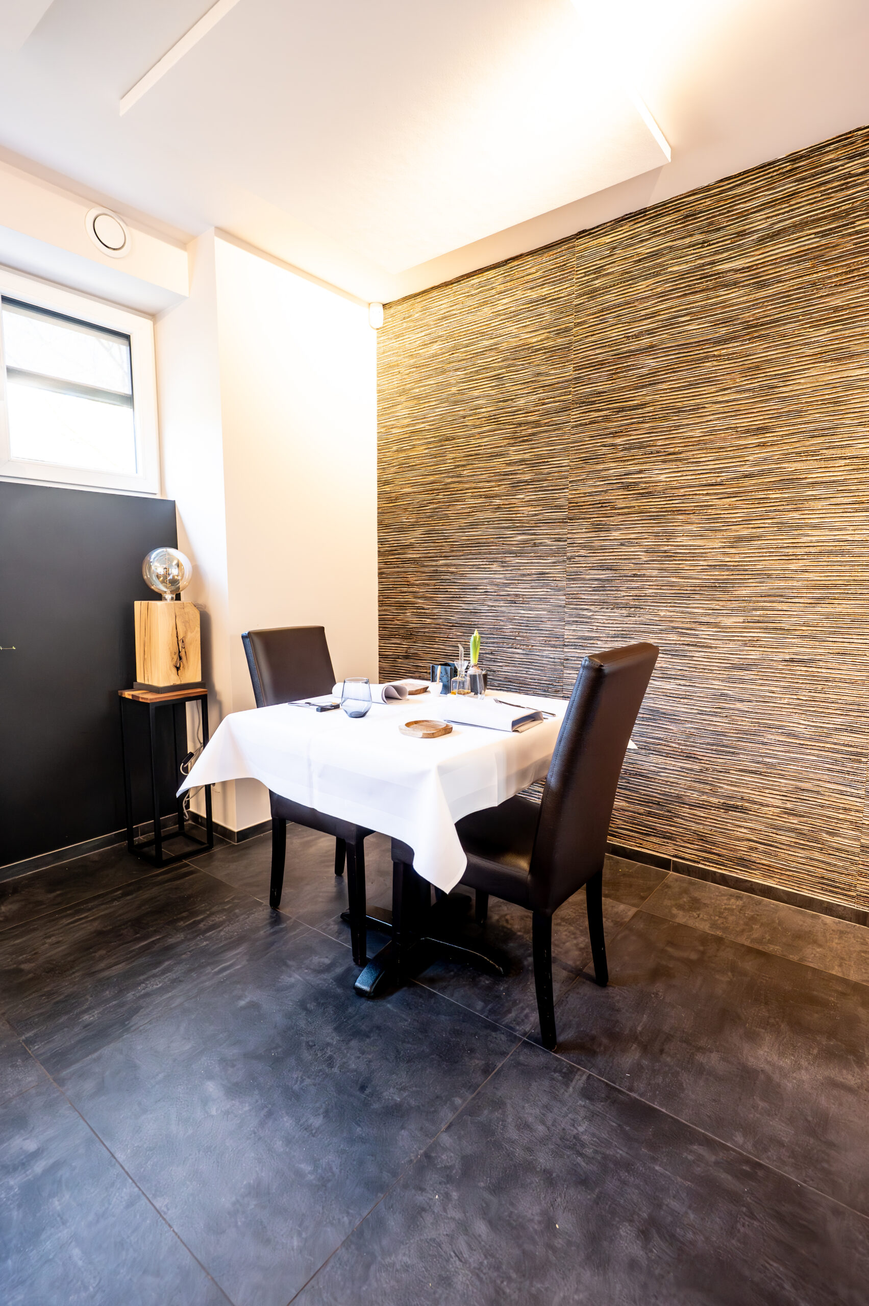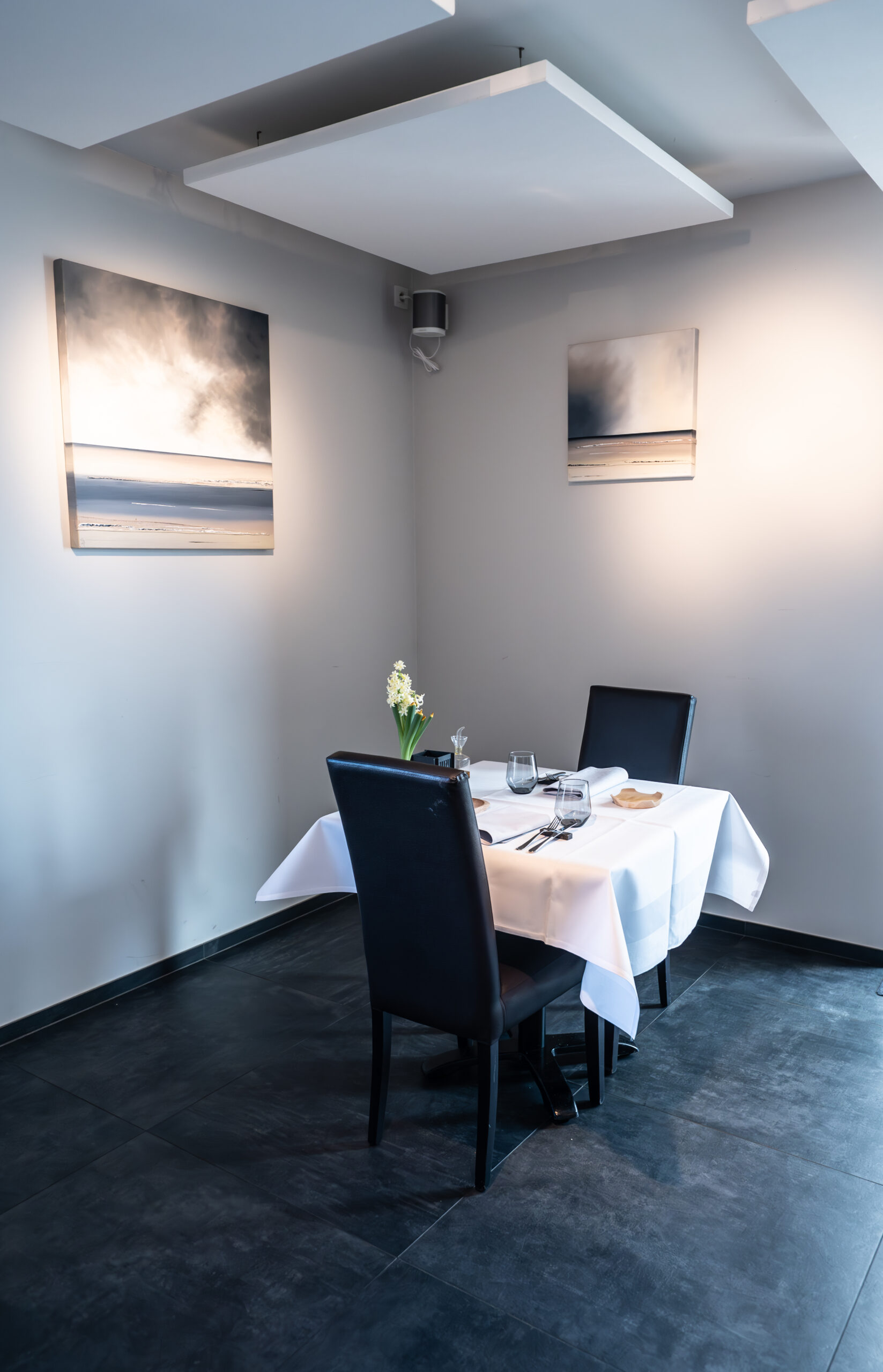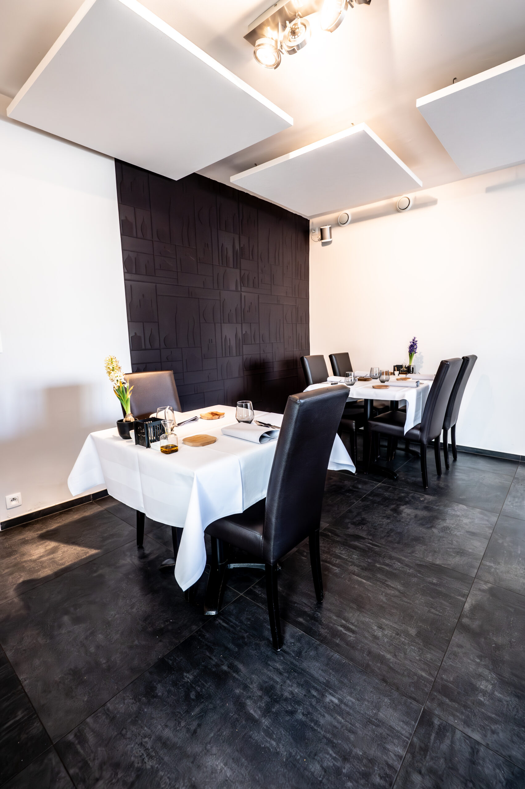 Aujourd'hui, le menu déroule ses promesses : Foie gras de canard, confit de saison, pain d'épices ; Won ton de faisan, célezri boule, crème arabica, cèpes, boudin noir , huile d'herbes ; Coquille Saint-Jacques marinée « Alvenat thaï », pickles de légumes, truite fumée, mousse brocolis, tapioca crunchy ; Filet de marcassin, butternut, jus aux cassis, arrancini au civet, chicon braisé, pommes au sumac ; Lieu noir en croûte de persil-cajou, choux de Bruxelles écrasés, ratte, panais, encre de seiche, lard fumé, moules ; Pièce de bœuf limousin de chez « Thomas », cèpes, frites fraîches, sauce gorgonzola, paprika fumé ; Ris de veau au beurre, jus brun et garniture de saison et Filet de chevreuil, dauphines, choux de Bruxelles, chicons, airelles.
