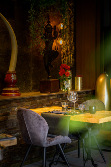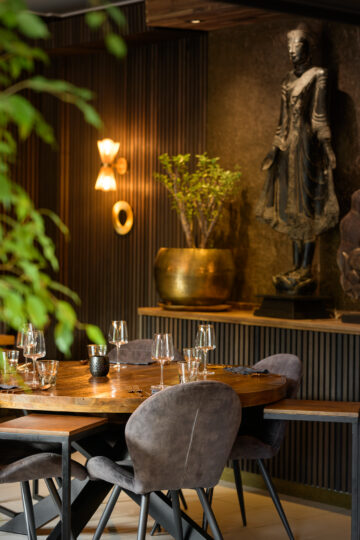 Après plus de neuf années passées en périphérie de Ciney, François Grégoire et la cheffe Panya Chaiwari ont choisi de poser leurs talents au cœur du Condroz liégeois, dans une maison de caractère, taillée pour l’hospitalité. Ici, la Thaïlande se découvre bien avant la première bouchée : sculptures en bois tropical, statues de Bouddha, peintures d’Extrême-Orient et lumières feutrées composent un décor raffiné qui invite au dépaysement.