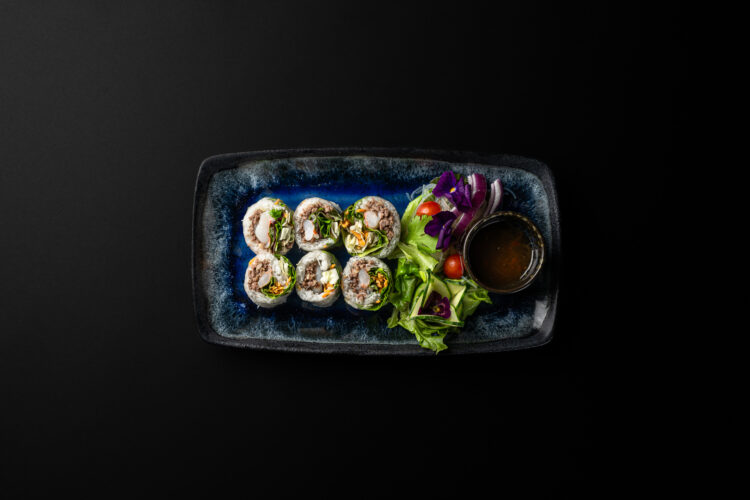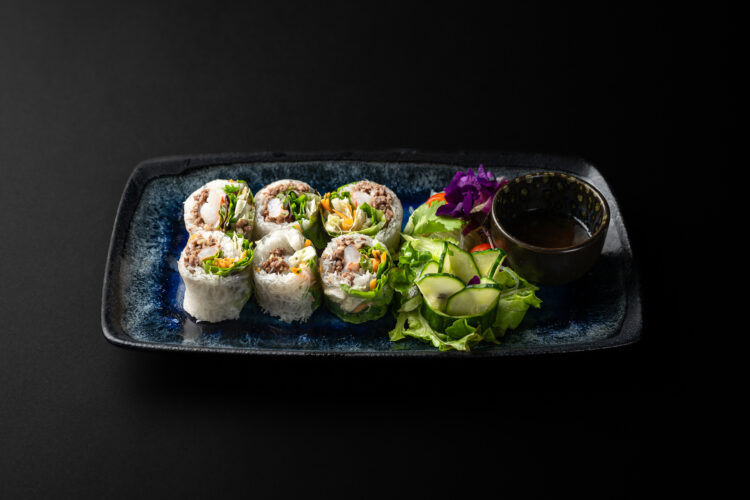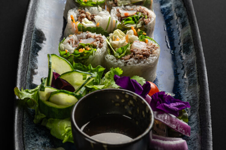 La carte met en avant quelques incontournables : cuisse de poulet au curry massaman, aux notes chaudes et enveloppantes ; rouleaux de printemps façonnés à la minute et relevés d’une sauce aigre-douce pimentée ; Yam Nuea, un émincé de bœuf Angus citron vert, sauce poisson, coriandre, menthe, lemon gras, tomate, clin d’œil savoureux à la street food de Bangkok ; Nuea Phad Kapraw, ancré dans la tradition familiale avec son parfum de basilic thaï et son équilibre de textures. Pour les amateurs, la fondue thaïlandaise, à commander à l’avance, promet un moment convivial et généreux.