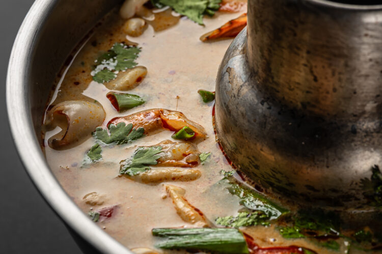 Dans ce cadre chaleureux, Panya Chaiwari déploie une gastronomie thaïlandaise fidèle aux traditions, mais toujours ouverte au dialogue des saveurs. Certaines préparations réclament patience et précision : le temps de cuisson n’est jamais précipité, c’est seulement ainsi que s’expriment la profondeur des bouillons, la subtilité des épices et l’harmonie des parfums. La cuisine de Panya illustre à merveille ce mariage séculaire entre Orient et Occident, une alliance d’arômes où douceur et piment se répondent avec équilibre. Chaque plat se construit comme une histoire : il dépend de la main qui le prépare, de la personne qui le reçoit, de l’occasion qu’il célèbre.