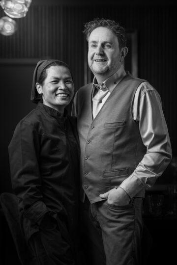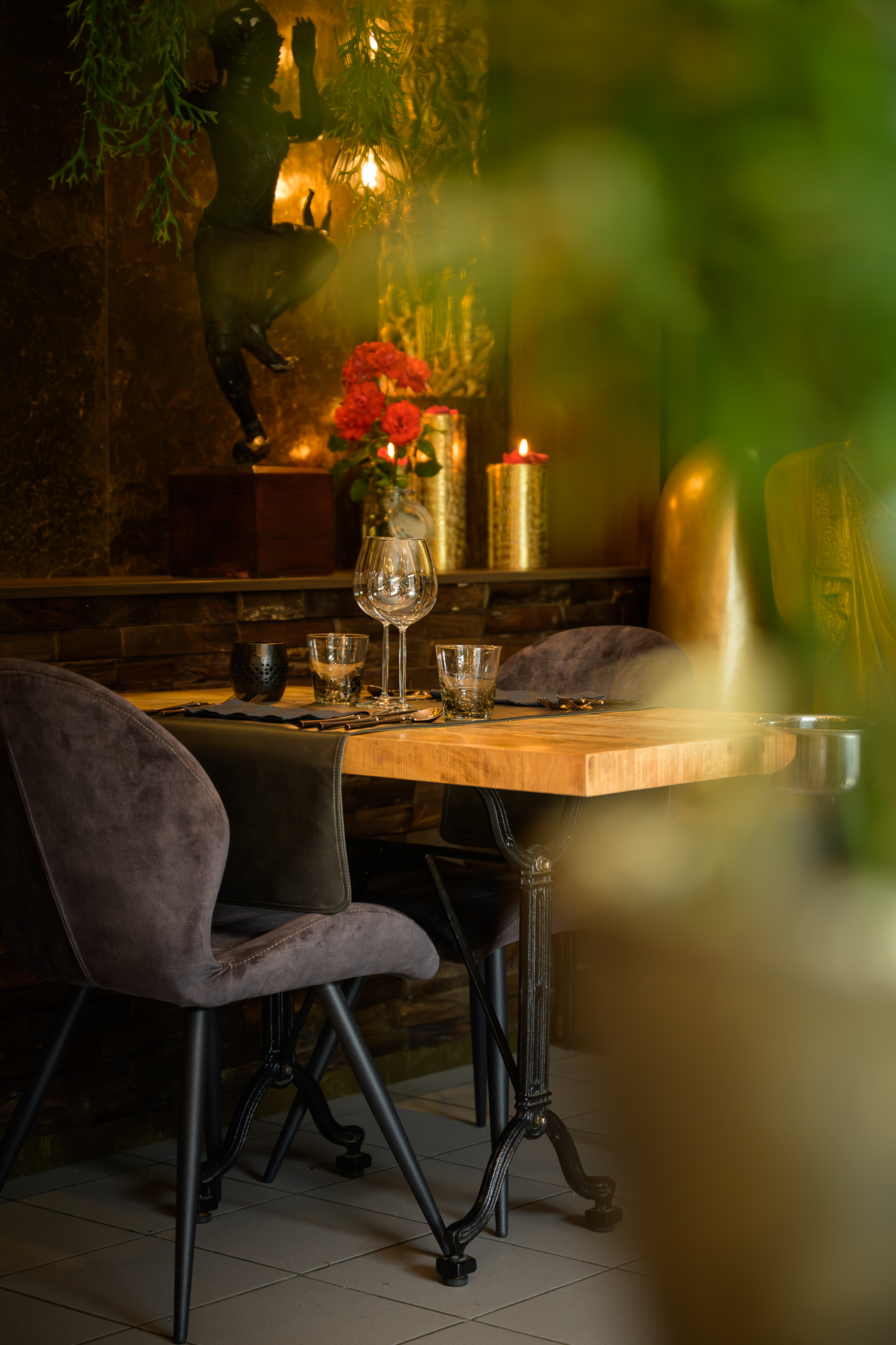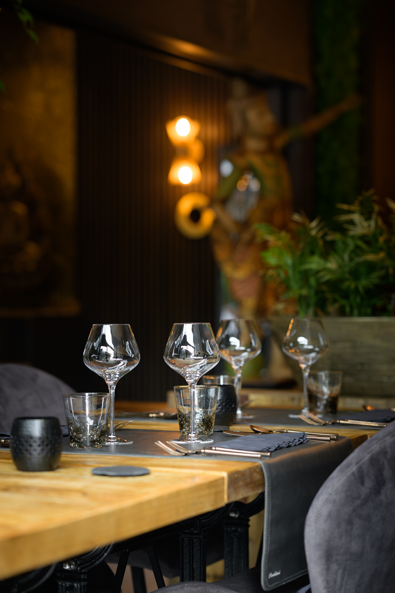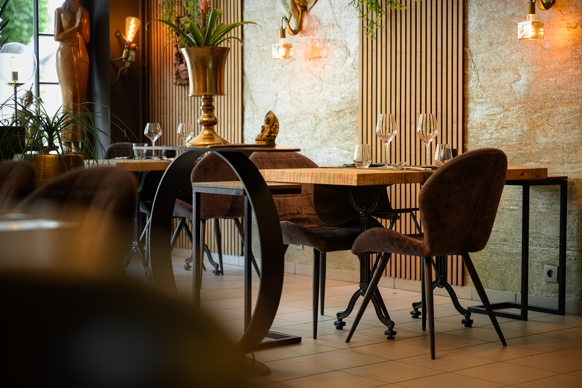 Après plus de neuf années passées en périphérie de Ciney, François Grégoire et la cheffe Panya Chaiwari ont choisi de poser leurs talents au cœur du Condroz liégeois, dans une maison de caractère, taillée pour l’hospitalité. Ici, la Thaïlande se découvre bien avant la première bouchée : sculptures en bois tropical, statues de Bouddha, peintures d’Extrême-Orient et lumières feutrées composent un décor raffiné qui invite au dépaysement.