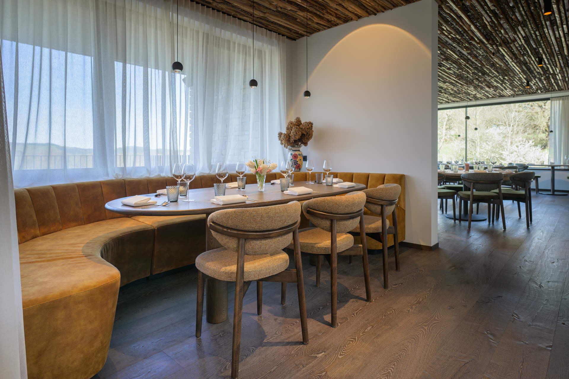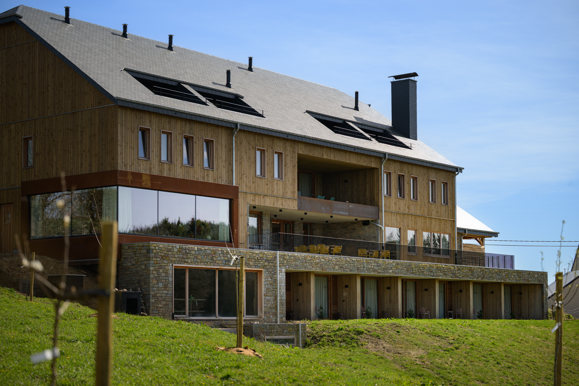 Ici, tout commence par le paysage. Les forêts enveloppent, les champs respirent, et le silence s’installe comme une matière. Le Relais s’y glisse avec justesse, sans rupture. Comme s’il avait toujours été là.