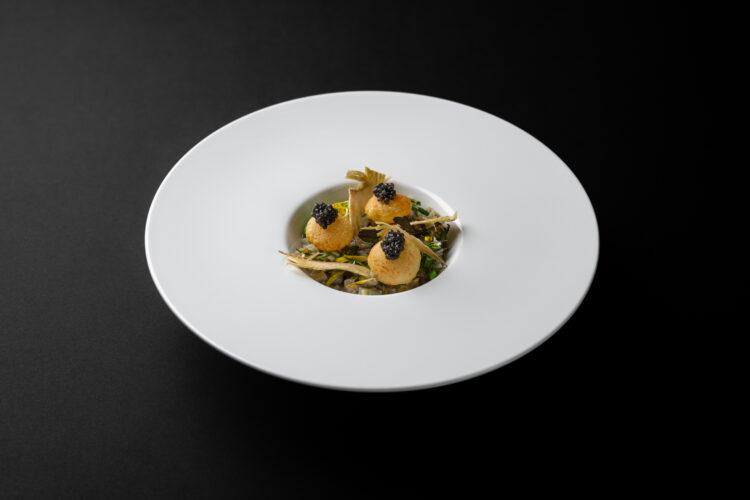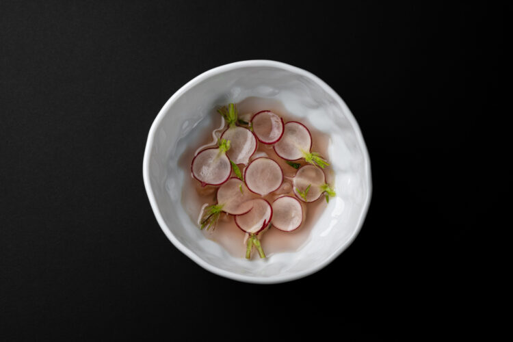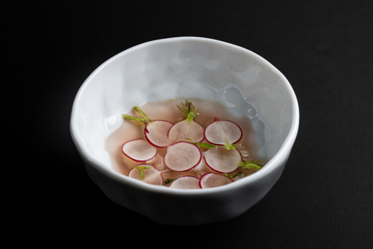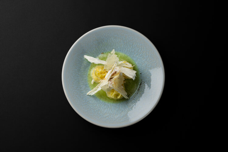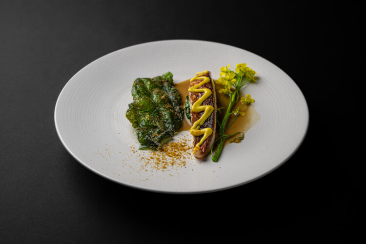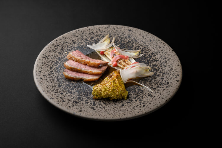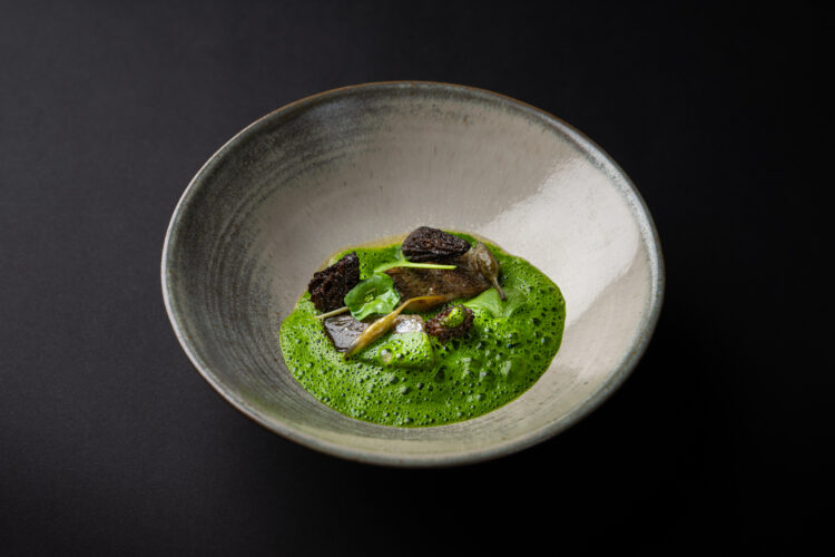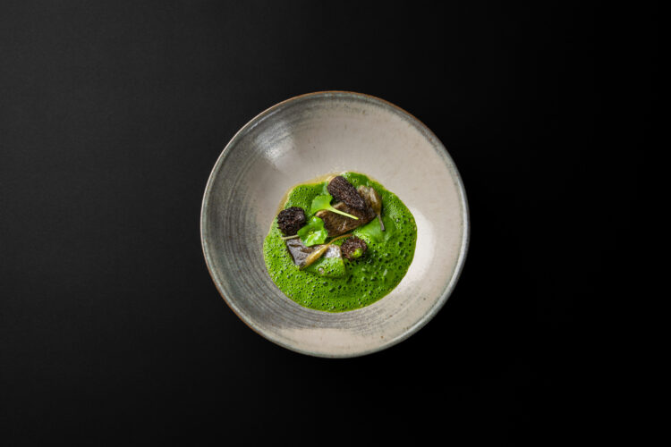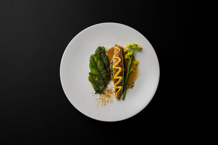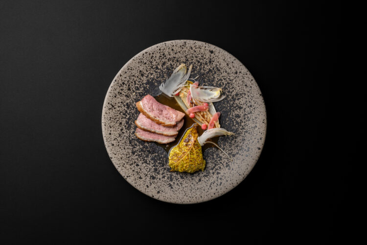 Dans l’assiette, cela se traduit par une cuisine d’une grande lisibilité, portée par les saisons et les intuitions du moment : Artichaut, huître, pomme de terre, lavande ; Radis, verveine ; Rouget, colza, citron confit ; Morilles, truite, hêtre ; Canard, rhubarbe, chicon. Des compositions qui avancent sans bruit, mais qui marquent durablement.