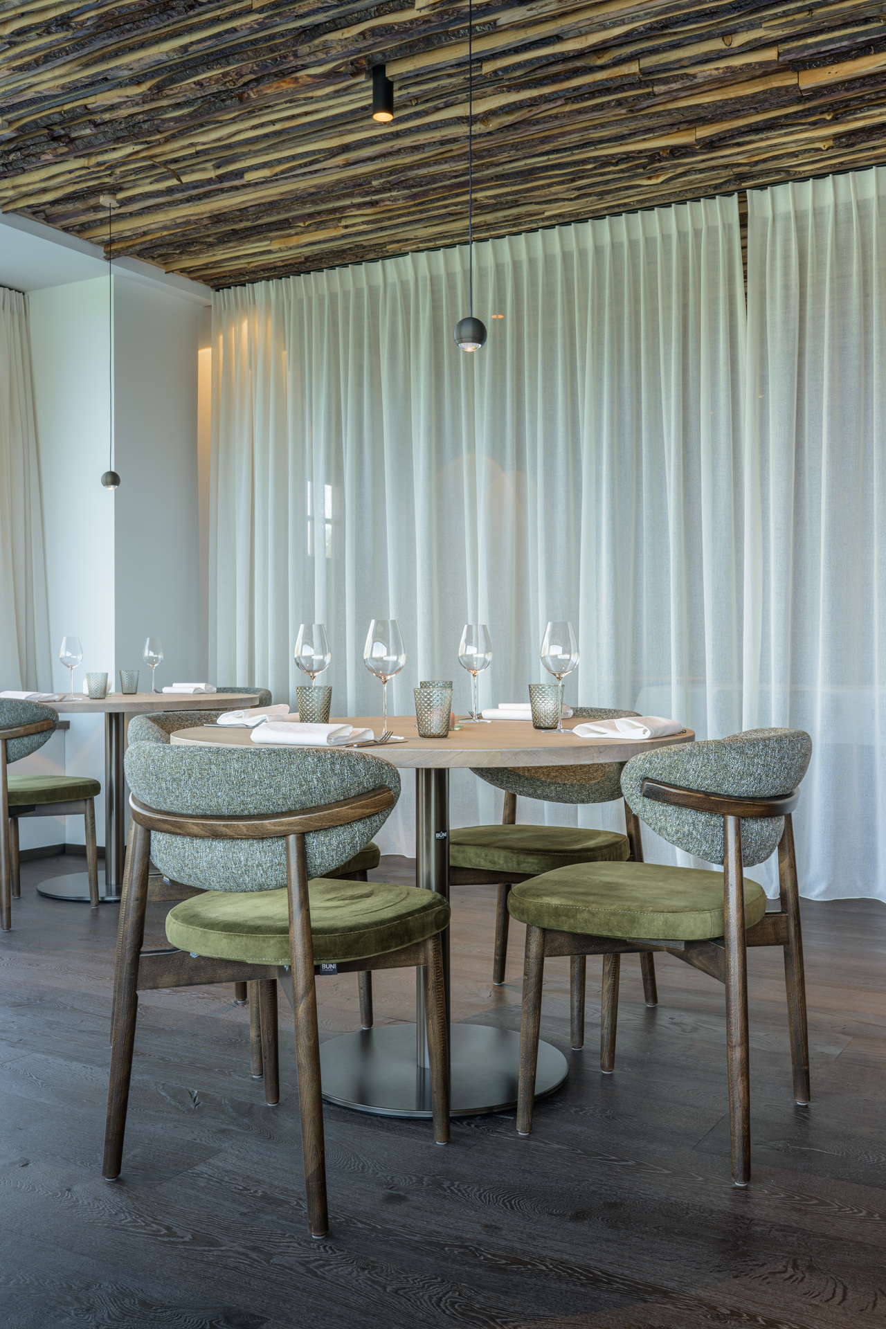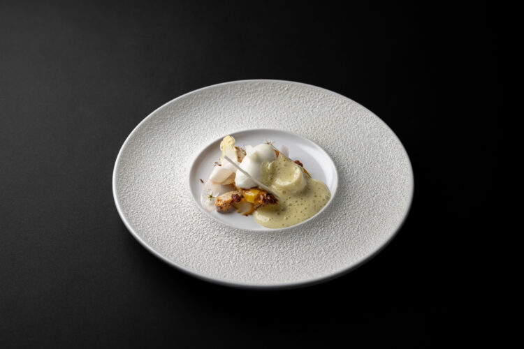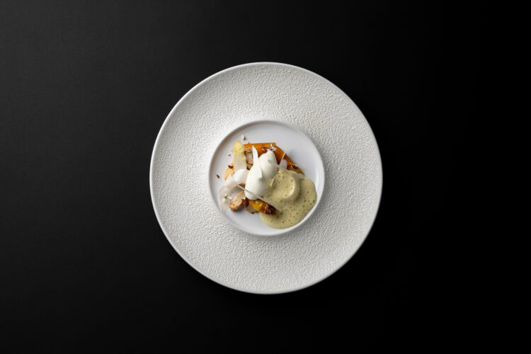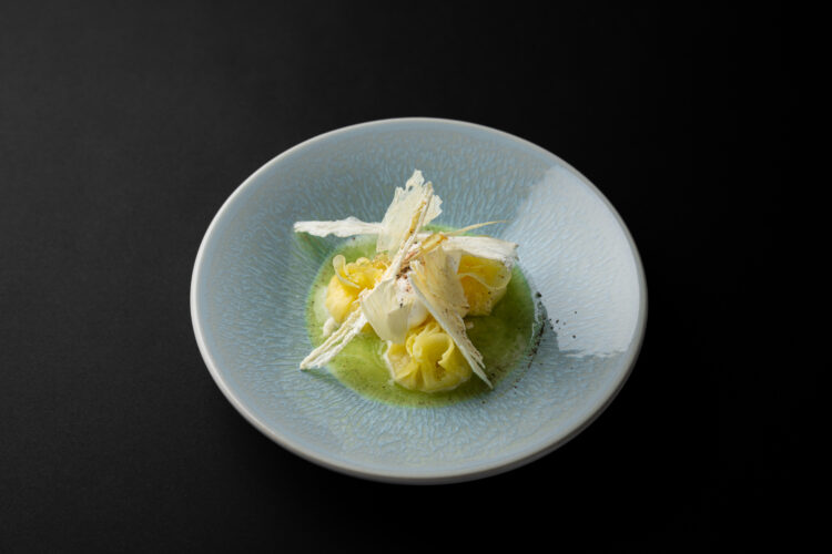 Le rythme s’installe, fluide, naturel. Surplombant la vallée et le potager, la cuisine de Séraphin Boon trouve son point d’équilibre. Passé par le Sea Grill et chez Bianchin et marqué par ses expériences à l’étranger, il développe ici une approche plus ancrée, plus directe. L’esprit libre, il vagabonde son univers. Le produit y est central, travaillé dans son intégralité, sans artifice. Rien n’arrive découpé, tout se transforme sur place, avec précision et respect.