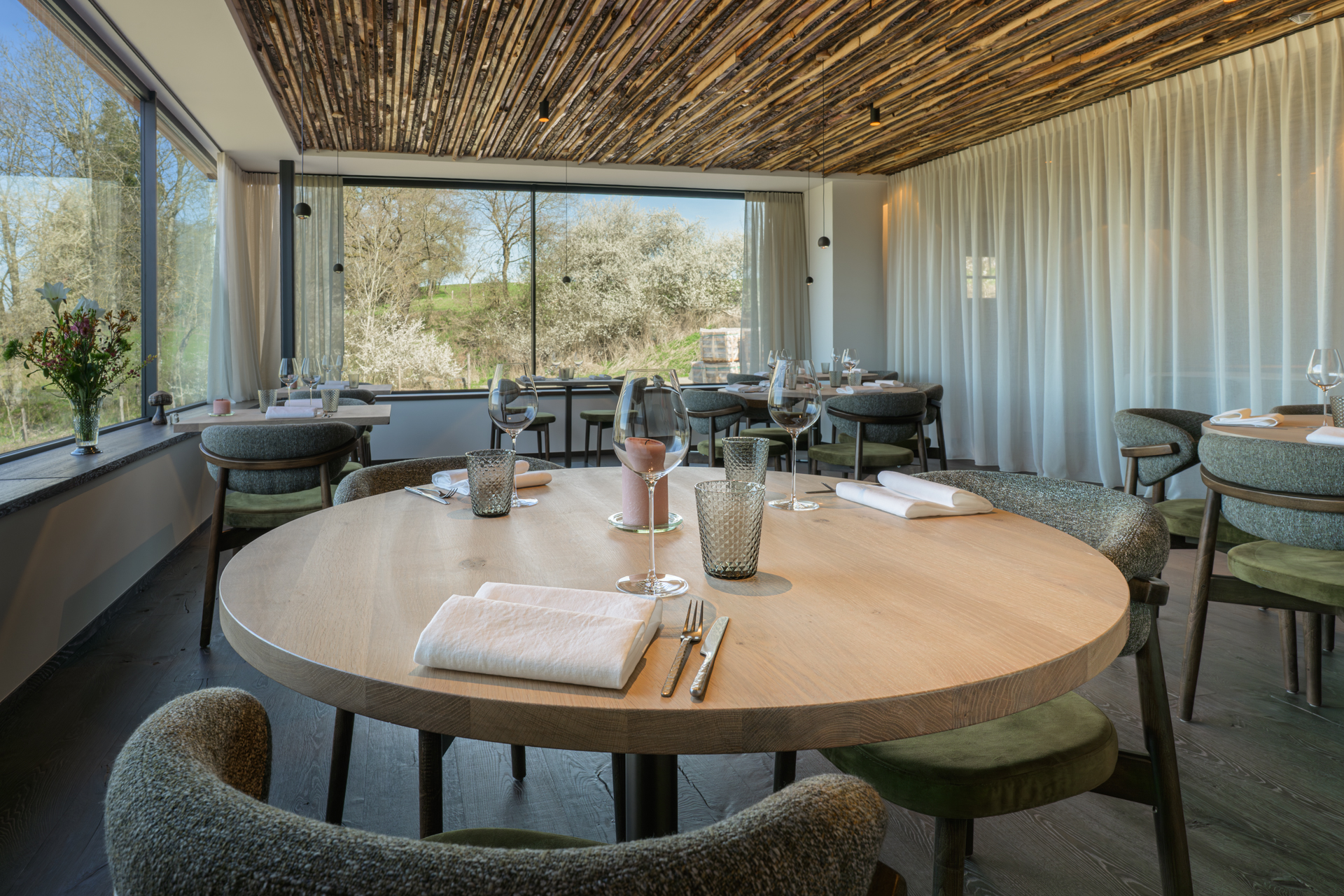 Leur trajectoire éclaire cette justesse. Rencontre en stage au Pastorale en région anversoise, passage par Roulers où ils lancent Weinbeisserei, une table d’hôtes libre et vibrante… avant que l’envie d’espace, de nature, et d’un projet plus ancré ne les guide vers Sainte-Ode. Le terrain trouvé presque par hasard devient alors le point de départ d’une aventure plus vaste. Une évidence, encore une fois.