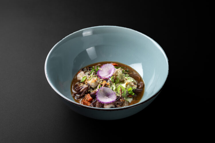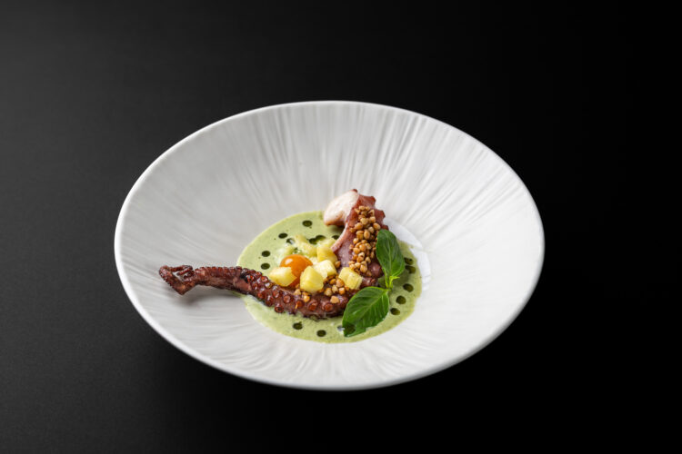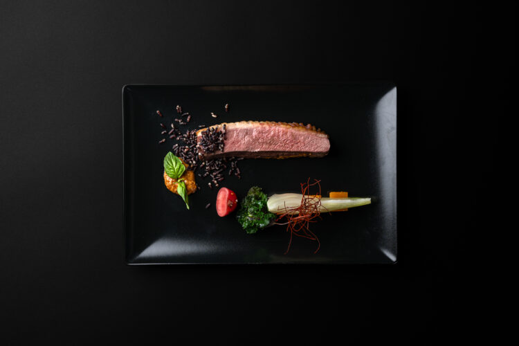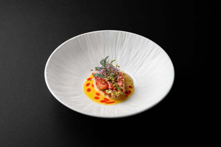 Dans l’assiette, tout se joue dans l’équilibre. Les saveurs sont nettes, vibrantes. Une acidité qui réveille, une herbe qui éclaire, une épice qui structure. Et surtout, ces sauces, profondes, enveloppantes, qui prolongent le goût et signent chaque plat avec précision.