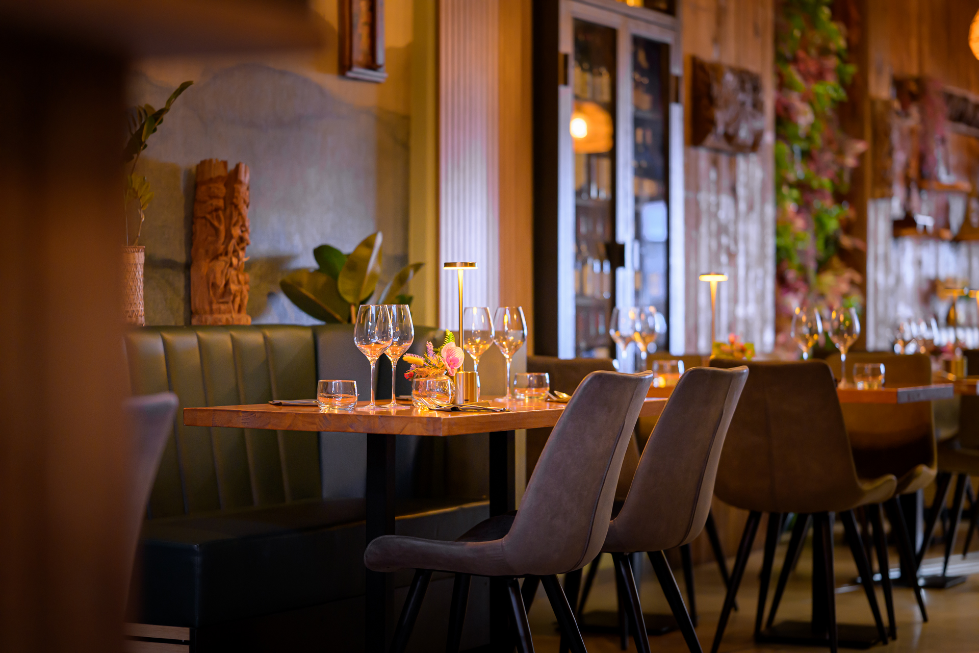 Le produit, ici, est central. Les épices, sauces et condiments arrivent directement de Thaïlande, pour préserver leur justesse. À cela s’ajoute un ancrage local affirmé : légumes bio, viandes régionales, herbes fraîches, fleurs comestibles. Une cuisine qui relie les territoires au lieu de les opposer.