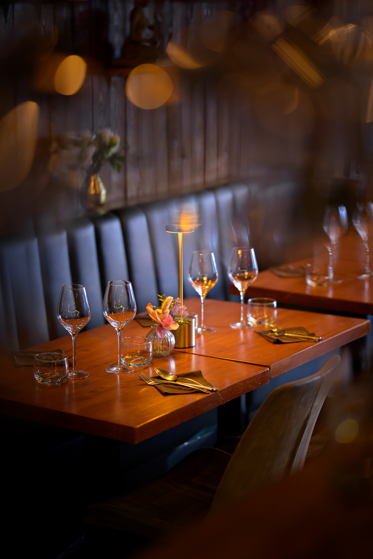 Le lieu accompagne sans bruit. Une salle épurée, récemment repensée, où la cuisine ouverte s’efface au fond, laissant place à une élégance sobre, loin des clichés. Le vendredi midi, les nouilles façon street-food bangkokoise viennent rappeler, avec justesse, d’où tout cela vient.