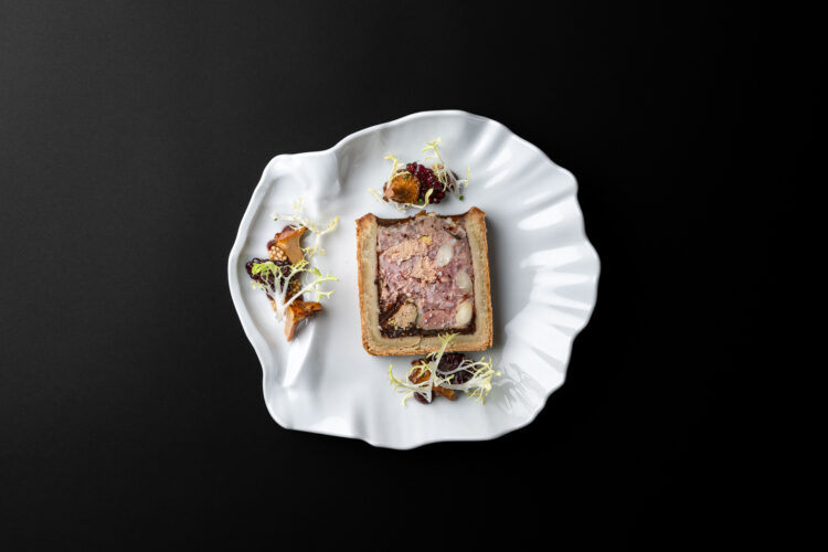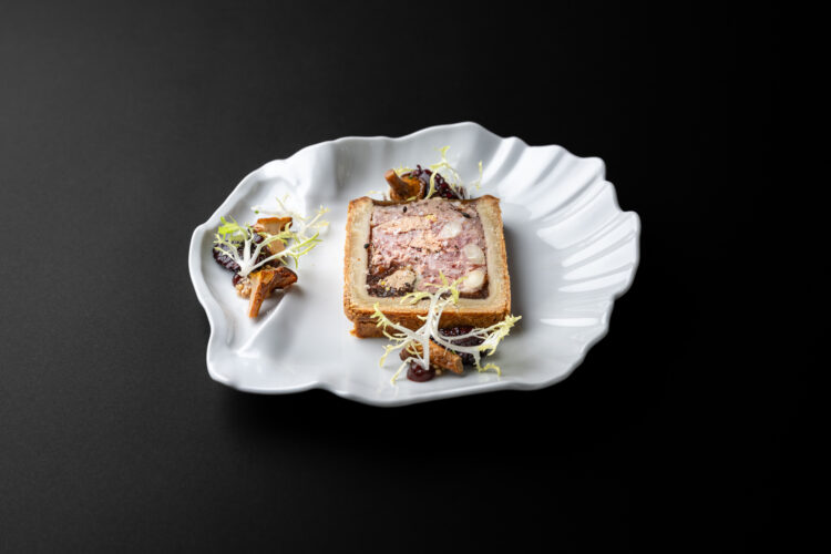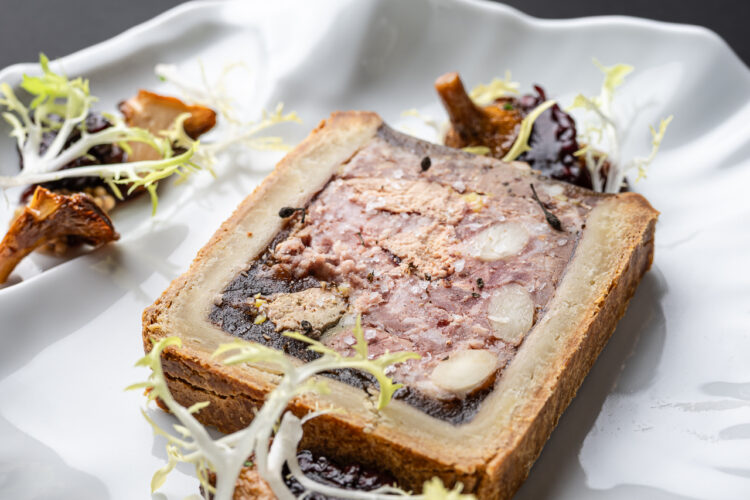 Elle s’ouvre avec un Pâté en croûte qui revisite la tradition : canard, foie gras, gel de betterave comme une encre rouge, condiment qui réveille tout. Une entrée simple, droite, limpide.