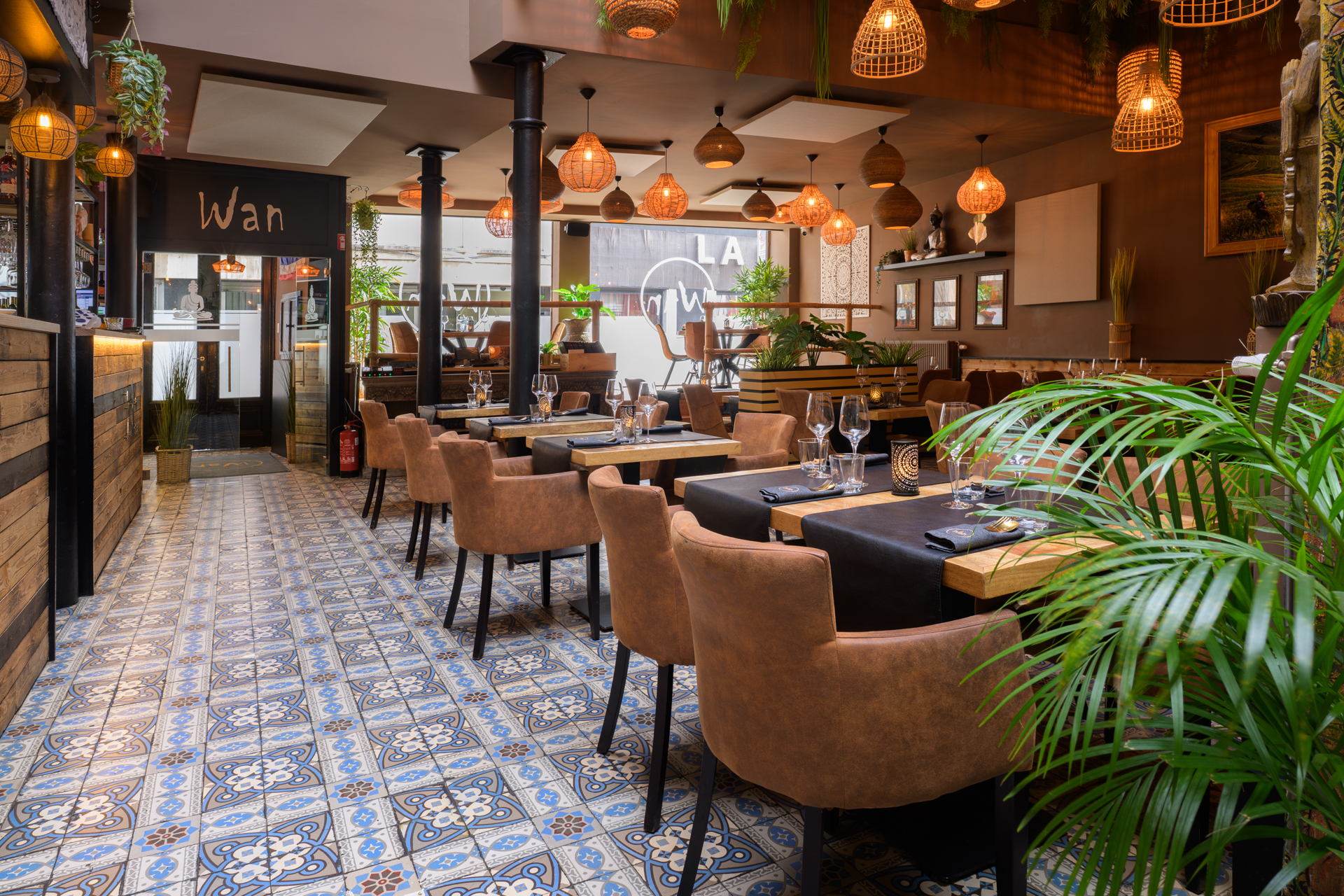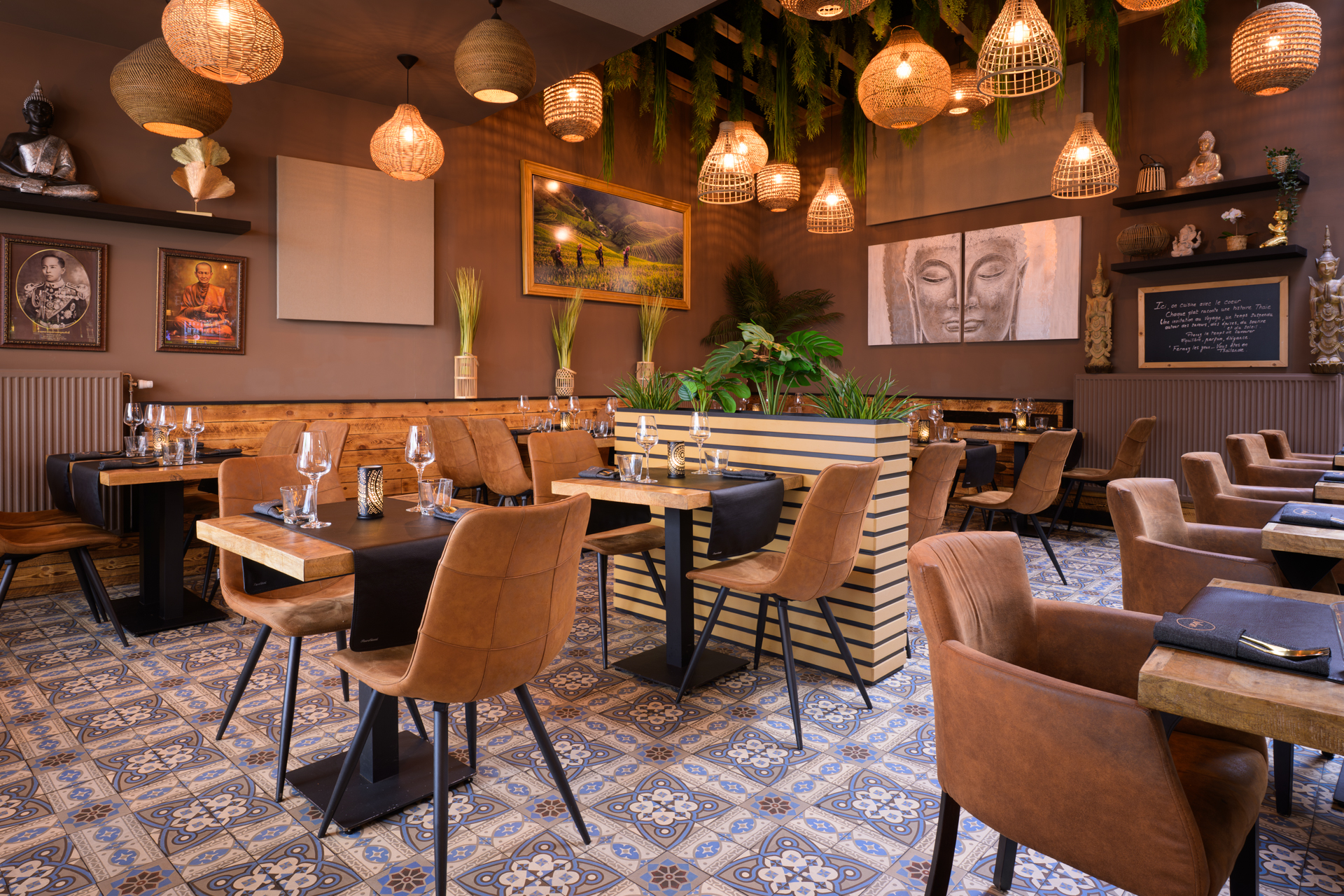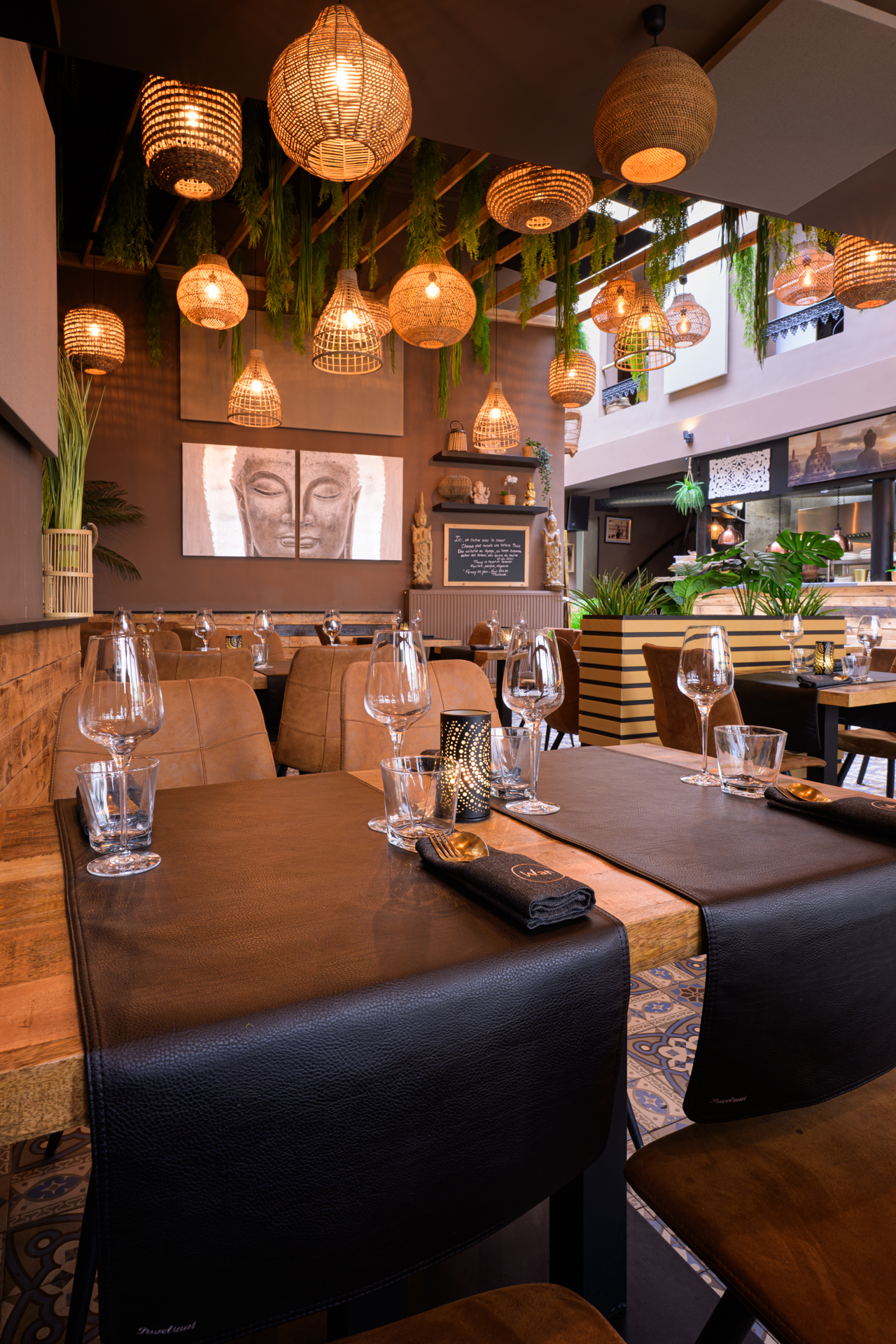 Entrer chez Wan Thaï Food, c’est franchir un seuil invisible. Celui qui, sans bruit, vous transporte ailleurs. Bangkok n’est pas loin, elle affleure dans les détails, dans la lumière qui tombe doucement, glisse sur les boiseries, s’attarde sur le carrelage lustré, accroche un abat-jour d’osier, puis se pose, paisible, sur un bouddha silencieux. Ici, tout semble pensé pour ralentir le regard, apaiser l’esprit, avant même que les sens ne s’éveillent.